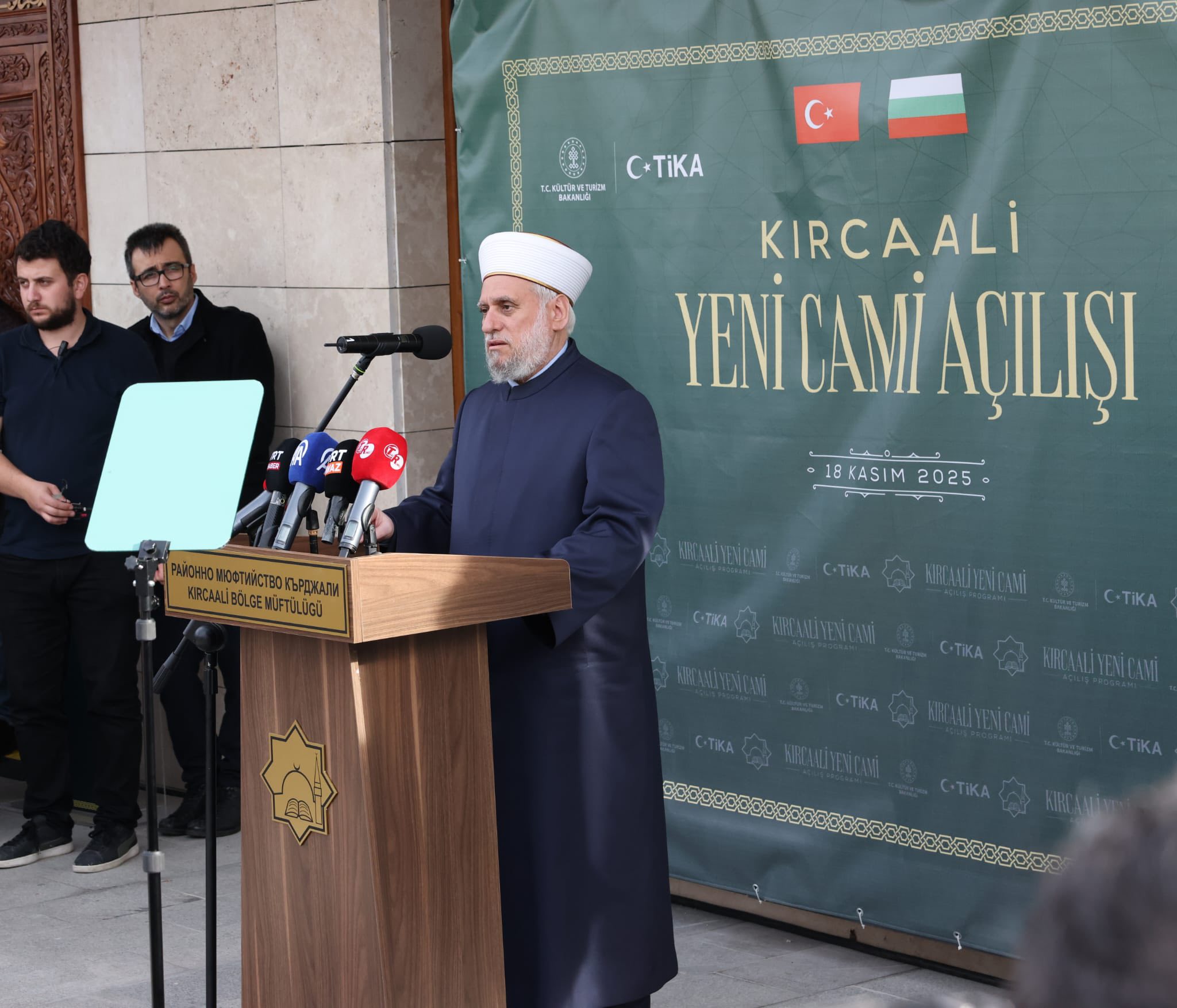 Джамията е построена с общи усилия и добрите приятелски отношения на България и Турция. За приноса изказваме благодарности на българските власти.