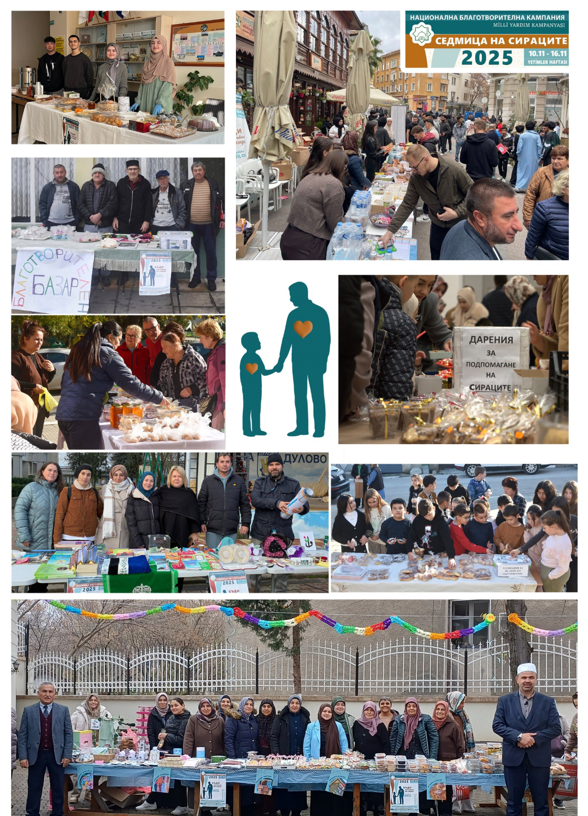 Позволете отново да изкажем искрени благодарности на районните ни мюфтийства, духовните ни училища, Висшия ислямски институт, джамийски настоятелства, имами, ваизи – ваизета, муаллими – муаллимета (преподаватели мъже и жени), на всички вас достойни и съпричастни хора, които се включихте в Националната кампания “Седмица на сираците” с оповестяването, с организирането на благотворителни базари, с дарения и други.