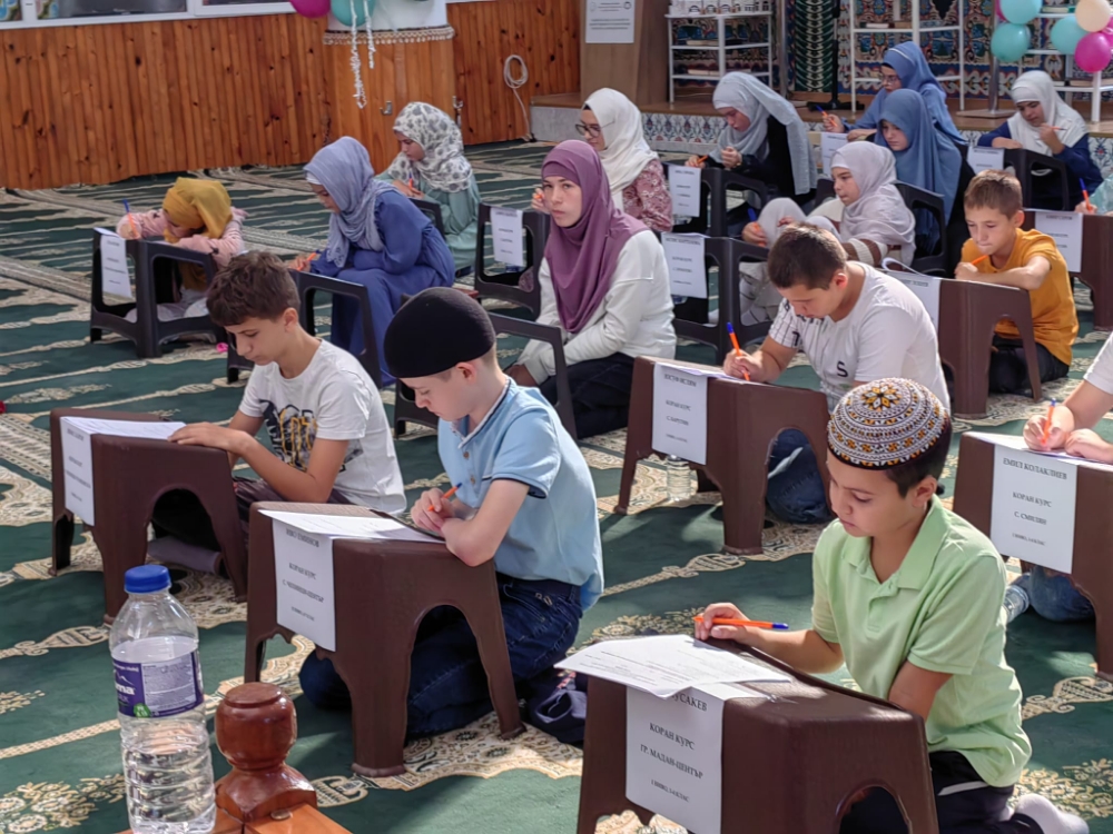 Öğrenciler, namaz kılma ve Kur'an okuma konularında test çözdüler ve uygulamalı olarak sınava girdiler.